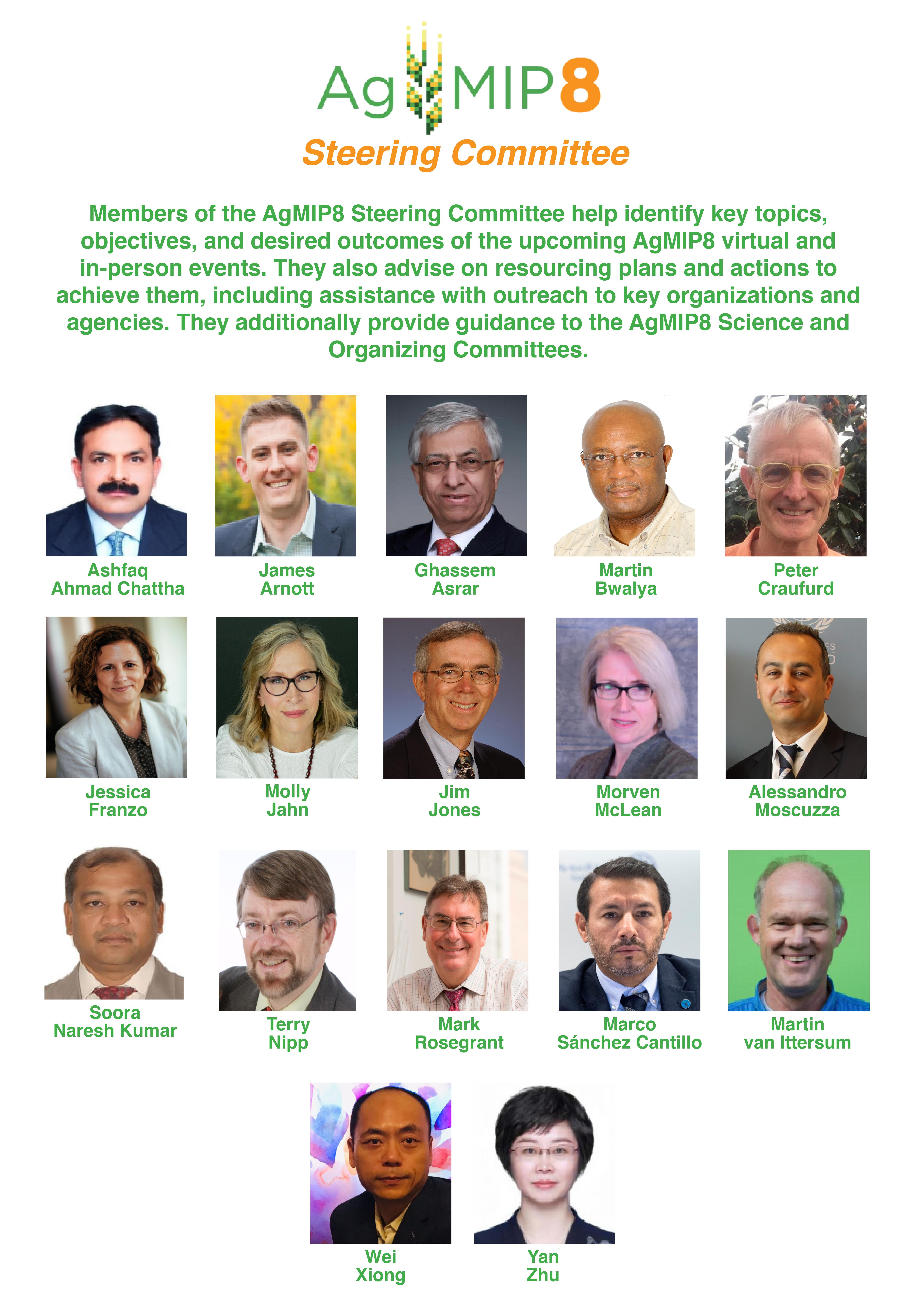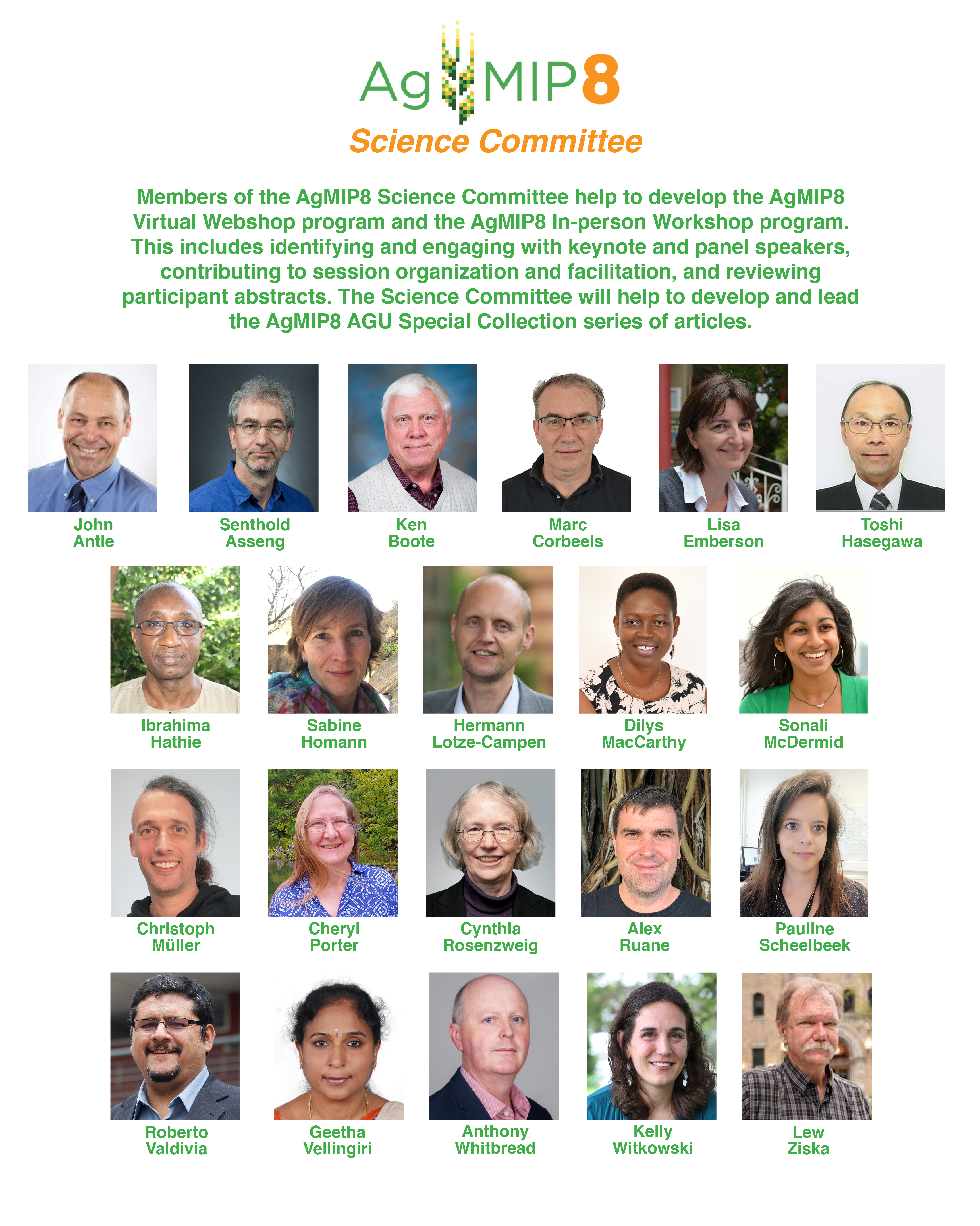 Many thanks to the keynote speakers, moderators, panelists, rapporteurs, and participants for attending the AgMIP8 Virtual Webshop!